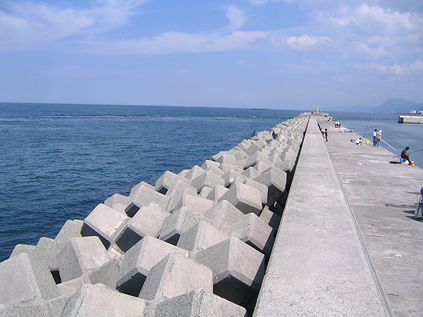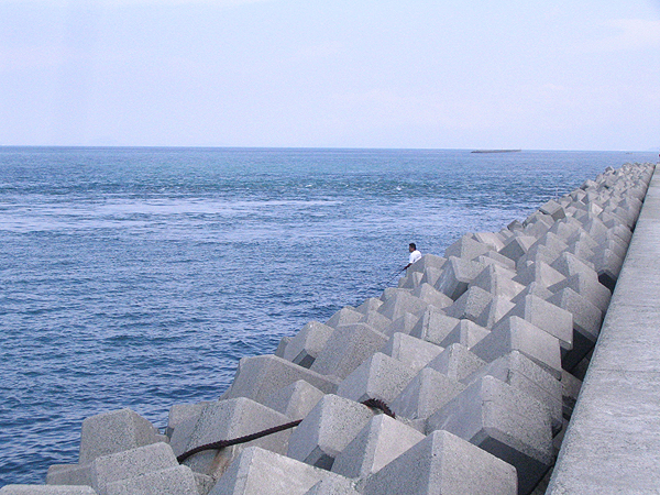 テトラポットに乗っかって釣ってる人はけーん