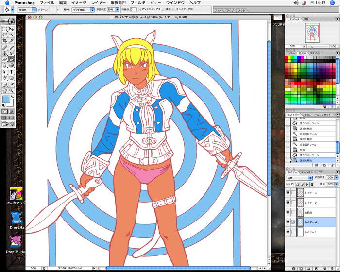 透明ロックかけて乗算とスクリーンを4.5枚レイヤー作ってくんだが